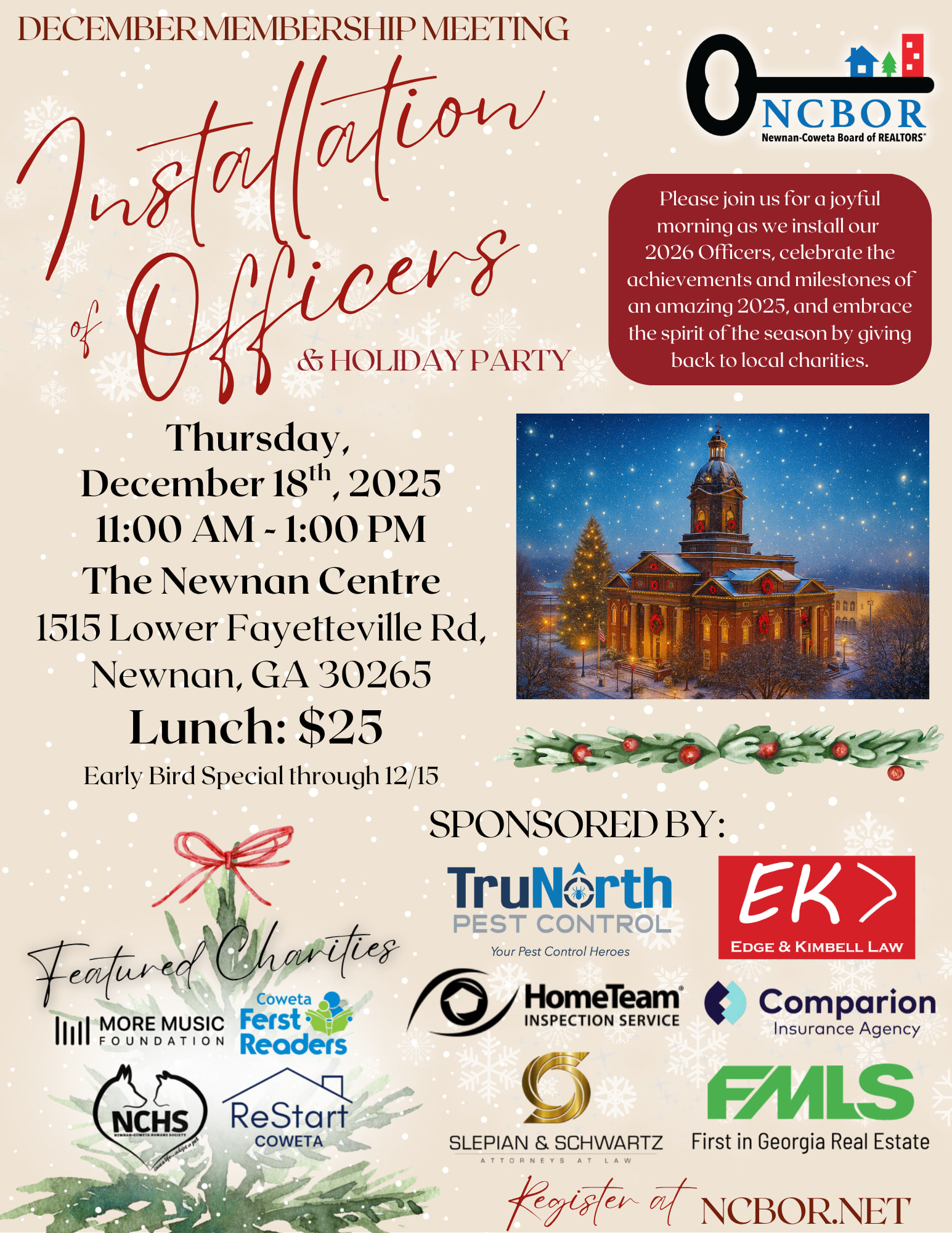 Celebrate the close of an incredible year as we install our 2026 Officers, honor the achievements and milestones of 2025, and embrace the spirit of the season by giving back to local charities.